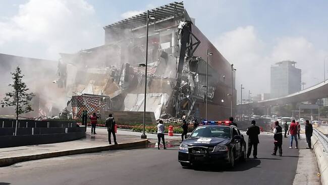 Esta mañana se derrumbó parte de la estructura de la Plaza Artz Pedregal, ubicada en la lateral del Periférico, a la altura del Hospital Ángeles, en dirección Norte.