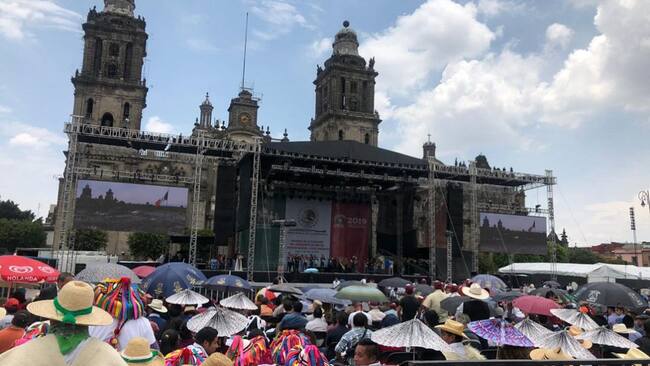 A unas horas del mensaje del presidente, cientos de adeptos siguen llegando al Zócalo capitalino, el festejo presenta cambios en el programa