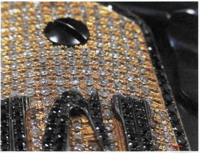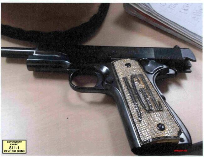 Una imagen que muestra a Joaquín Guzmán Loera con una pistola Super .38 con diamantes incrustados