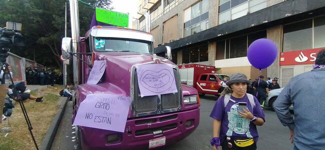 16:40 horas: Colectiva de mujeres traileras se unen a la marcha.