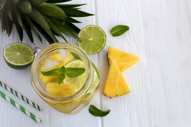 ¿Antojo de algo fresco? Con 3L de agua de piña sin cáscara pondremos hojas de hierbabuena sin tallos, si no es suficiente el dulzor natural puedes agregar algún endulcorante pero recuerda no abusar del dulce.