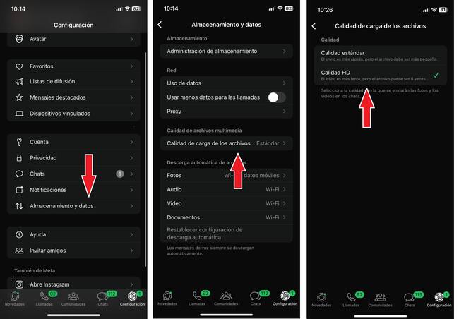 Así de sencillo, ya puedes mandar siempre fotos y videos en alta calidad. Solo ten en cuenta el almacenamiento de tu dispositivo y si este soporta contenido multimedia en HD.