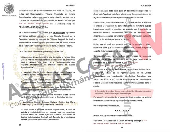En el documento de la resolución tomada por el Noveno Tribunal Colegiado de la Ciudad de México, correspondiente al amparo en revisión 25/2024, se encuentran los argumentos expuestos por la FGR sobe el por qué no ha podido resolverse la denuncia presentada por Kate del Castillo desde 2020.
