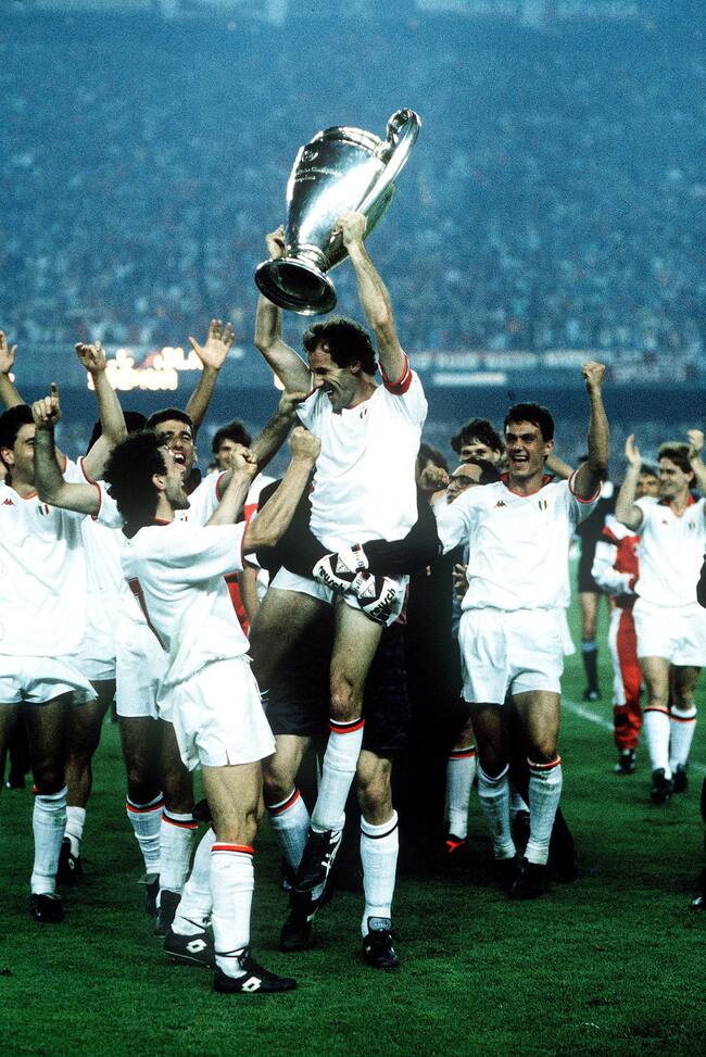 Franco Baresi, capitán del AC Milán levanta el trofeo conseguido en 1989. / Alessandro Sabattini