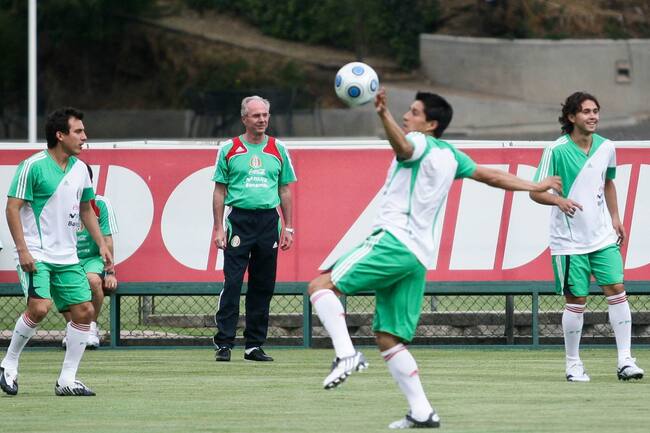 MÉXICO, D.F., 24MARZO2009.- El técnico Sven Goran Ericksson, Carlos Vela, Carlos Salcido y Fernando Arce, durante una práctica de la Selección Mexicana de Futbol. FOTO: ISAAC ESQUIVEL/CUARTOSCURO.COM
