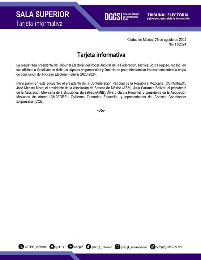 “Con base en la Constitución y en la ley electoral, las y los magistrados de esta autoridad jurisdiccional analizarán y resolverán las impugnaciones en los plazos establecidos a fin de que el Poder Legislativo se integre”, indica en una tarjeta informativa.