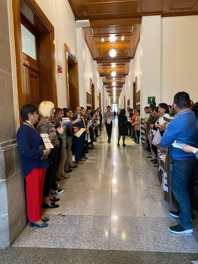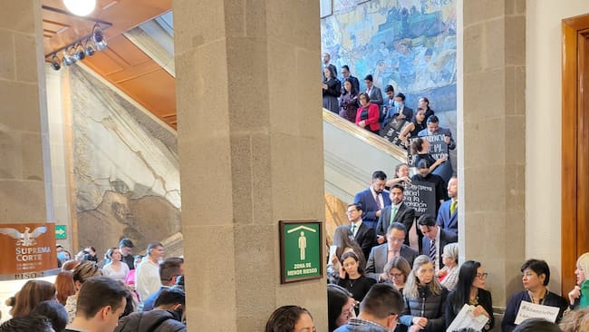 Esperaron a que pasaran los ministros por los pasillos para, en silencio, mostrarles su inconformidad ante la reforma judicial.