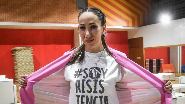 Noemi Berenice Luna, diputada y coordinadora del Pan, muestra su playera con la leyenda "#Soy Resistencia" durante la sesión ordinaria en la sede alterna "Sala de Armas" en la que se discutió la reforma al Poder Judicial. FOTO: MARIO JASSO/CUARTOSCURO.COM
