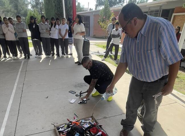 Una secundaria de Durango hizo cumplir su reglamento, destruyendo celulares y todo tipo de artículos prohibidos. / Redes