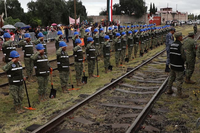 “Un convenio es la firma de Secretaría de Infraestructura, Comunicaciones y Transportes con la Sedena, porque juntos van a construir este tren y la otra es también de la Secretaría de Infraestructura, Comunicaciones y Transportes con Medio Ambiente para iniciar los estudios en lo que se hace la manifestación de impacto ambiental de todo el tren.