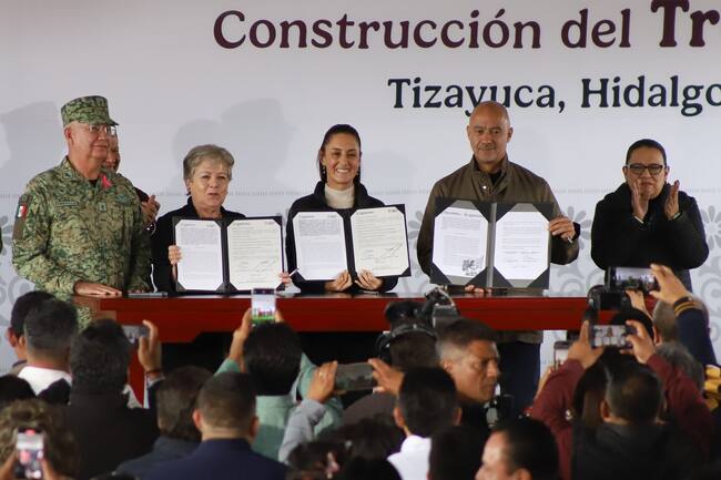 La presidenta Claudia Sheinbaum encabezó el banderazo para la construcción del tren México-Pachuca, que dijo, se logrará tras un convenio para que sea construido por militares.