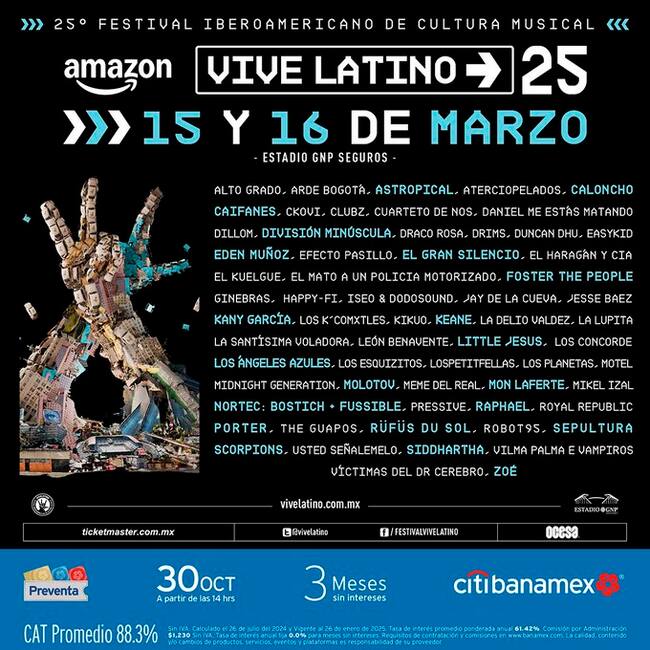 Si piensas asistir ten en cuenta que la preventa de boletos para el Festival Vive Latino 2025 dará inicio el próximo 30 de octubre, mientras que la venta al público general estará disponible el 31 de octubre.