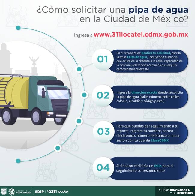 En caso de requerir una pipa de agua ante las acciones que se realizarán en materia de mantenimiento puedes solicitarla de la siguiente manera: