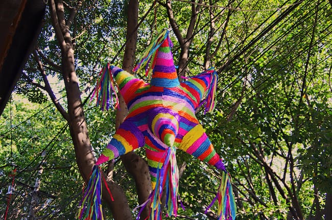Los brillantes colores que tiene la piñata representan las vanidades y las tentaciones del diablo.