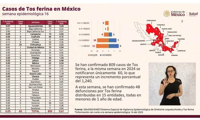 Durante el quinto informe quincenal del gabinete de salud, encabezado por David Kershenobich Stalnikowitz, se reveló que 48 bebés menores de un año han fallecido en 15 entidades del país a causa de la tos ferina en 2025.