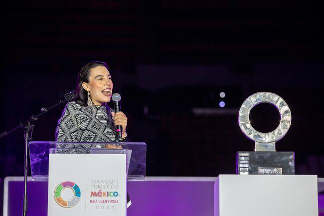 Acompañada por la gobernadora de Baja California, Marina del Pilar Avila Olmeda, la titular de la Secretaría de Turismo (Sectur), hizo la entrega representativa de la estafeta a la gobernadora de Guerrero, Evelyn Salgado Pineda.