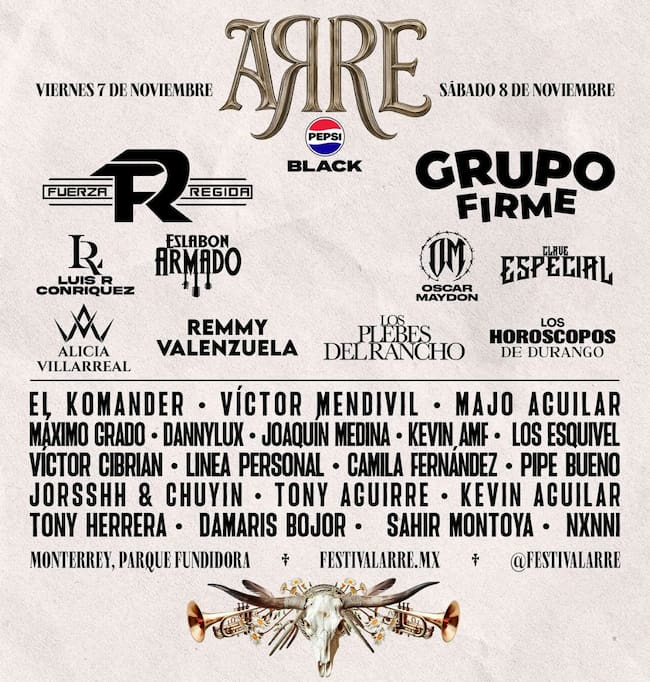 Fuerza Regida, Grupo Firme y Luis R Conriquez están entre los artistas que se presentarán en el Festival Arre 2025 en Monterrey.