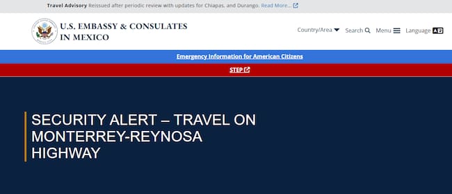 La alerta se publicó en la página web de la Embajada y Consulados de Estados Unidos en México