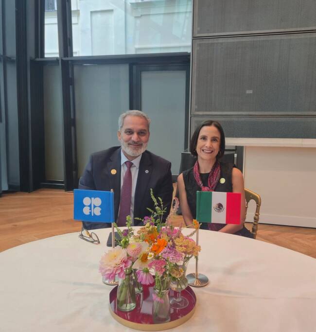 En la Sesión Ministerial en la que la secretaria de Energía, Luz Elena González Escobar, representó a México como país OPEP+, participaron también la vicepresidenta y ministra del Poder Popular de Hidrocarburos de Venezuela, Delcy Eloína Rodríguez Gómez; el vice primer ministro de Asuntos Energéticos del Ministerio del Petróleo de Irak, Hayan Abdulghani Abdulzahra Alsawad; el ministro de Hidrocarburos de la República del Congo, Bruno Jean-Richard Itoua; el ministro de Hidrocarburos y Desarrollo Minero de Guinea Ecuatorial, Antonio Oburu Ondo; el ministro de Petróleo y Gas de Libia, Khalifa Rajab Abdulsadek; y la ministra de Transición Energética y Desarrollo Sostenible de Marruecos, Leila Benali.
