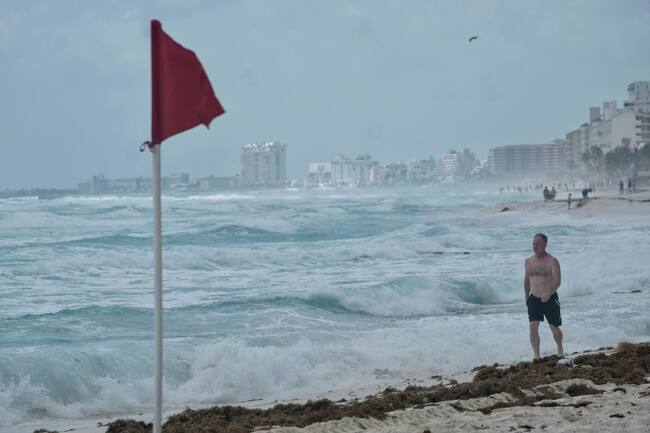 Bandera roja por el fuerte oleaje. FOTO: ELIZABETH RUIZ/CUARTOSCURO.COM