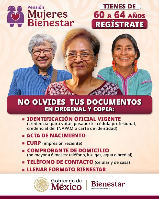 Conoce los Requisitos para registrarse a la Pensión Mujeres Bienestar en 2025. / Marvin Samuel Tolentino Pineda