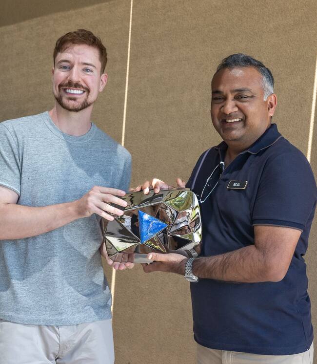 El creador de contenido estadounidense acaba de superar los esta cifra de suscriptores en la plataforma, una hazaña sin precedentes que fue reconocida con un botón personalizado entregado por el mismísimo CEO de YouTube, Neal Mohan.