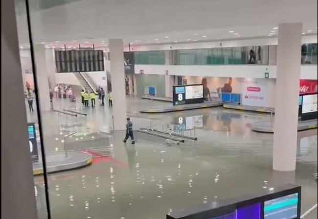 La inundación afectó a las pistas y las salas de entrega de equipaje del AICM. / Captura de pantalla