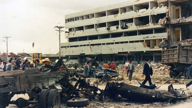 Un camión bomba con 500 kilos de dinamita explotó frente a la sede del Departamento Administrativo de Seguridad (DAS) en Bogotá, en un ataque perpetrado por el Cartel de Medellín, liderado por Pablo Escobar, en el contexto de su guerra contra la extradición.