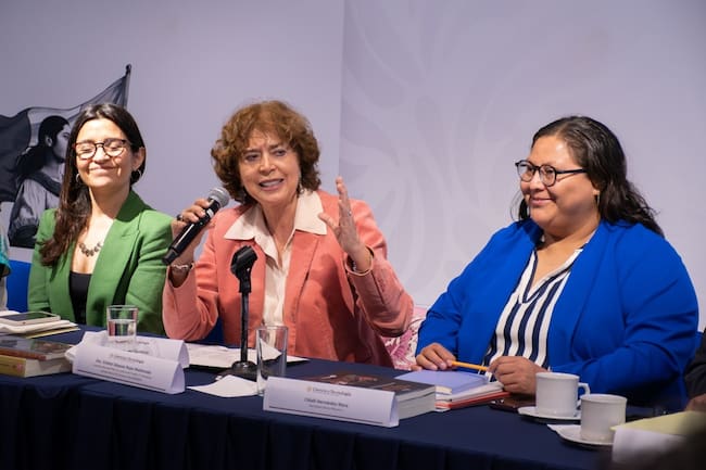 La subsecretaria de Ciencia y Humanidades de la Secihti, Violeta Vázquez-Rojas Maldonado, coordinadora del Plan de Justicia del Pueblo P’urhépecha y moderadora de la mesa recordó que el Plan de Justicia del Pueblo P’urhépecha es un programa que impulsa la Presidenta Claudia Sheinbaum Pardo, y que se construye en el diálogo entre los gobiernos federal y estatal con las autoridades de las comunidades indígenas.