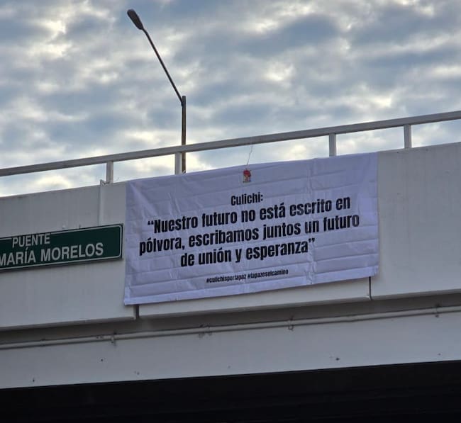 A lo largo del último año, decenas de narcomantas han sido colocadas en distintos puntos de Culiacán para dejar mensajes de amenazas y advertencias, pero este martes 09 de septiembre, a un año del recrudecimiento de la violencia en Sinaloa por la guerra entre “Los Chapitos” y “ Los Mayitos”, la situación fue diferente, pues la capital sinaloense despertó con mensajes de paz sobre sus principales vialidades.