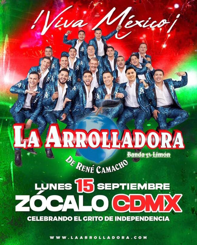 Por otro lado, la presidenta Claudia Sheinbaum anunció que en la misma alcaldía pero en el Zócalo de la CDMX, se presentará la Arrolladora Banda el Limón a partir de las 8PM. Este evento se podrá ver por televisión abierta y en los canales oficiales en Youtube.