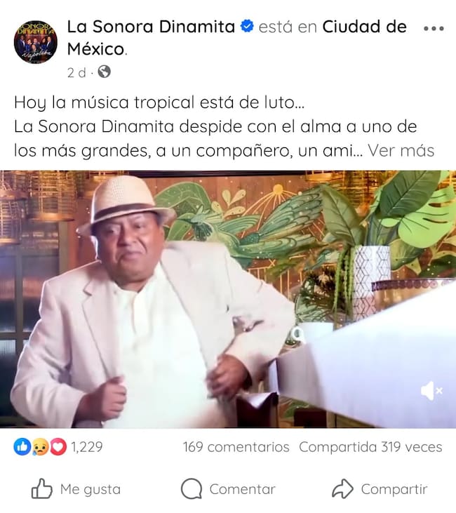 En éste, mencionan: “Hoy la música tropical está de luto… La Sonora Dinamita despide con el alma a uno de los más grandes, a un compañero, un amigo y un artista que dejó huella en cada nota, en cada escenario y en cada corazón que tuvo el privilegio de escucharlo”.