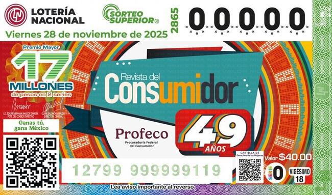 Para celebrar 49 años de la Revista del Consumidor, publicación de distribución gratuita mensual, la Secretaría de Economía, Lotería Nacional y la Procuraduría Federal del Consumidor (Profeco) develaron el billete del Sorteo Superior No. 2865, que reconoce la información objetiva a favor de los consumidores, comparativas de precios (como el Quién es Quién en los Precios), orientaciones sobre los derechos, así como la promoción del consumo informado, responsable y saludable.
