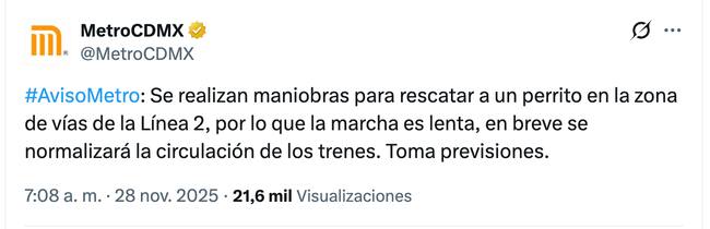 El metro ha confirmado que el corte de corriente fue levantado y que el avance de los trenes se está normalizando, aunque persiste la saturación de pasajeros en las principales estaciones. Así que mantente al pendiente de los canales oficiales y espera actualizaciones del metro para saber qué pasará con el perrito de la línea 2.