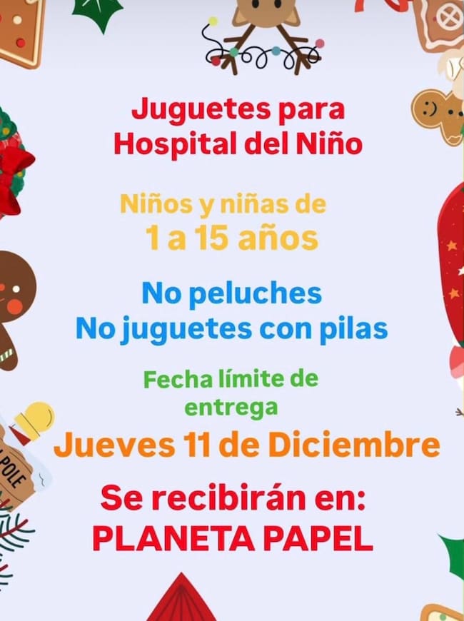Se puede donar cualquier juguete, excepto peluches y juguetes con pilas. Sin embargo, Fátima también aclaró que no se acepta dinero en efectivo ni transferencias bancarias, únicamente juguetes para niños de entre 1 y 15 años.