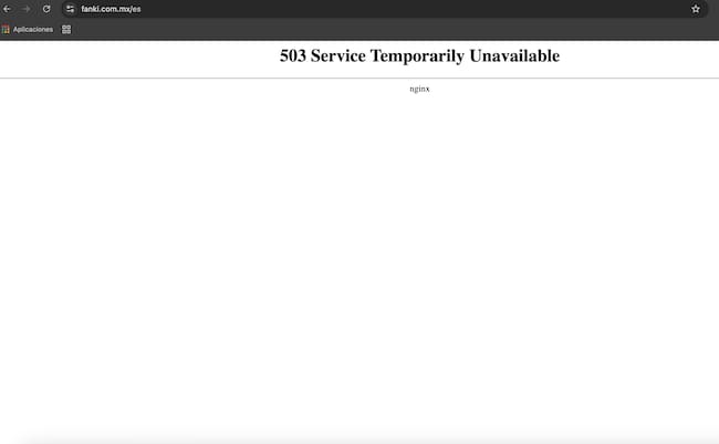 Error en Fanki a las 8:25 am: “503 Service Temporarily Unavailable”.