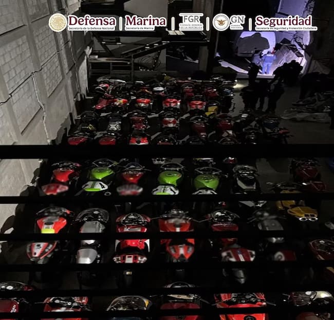 Autoridades indicaron que agentes ejecutaron cuatro cateos en domicilios de la Ciudad de México y Estado de México donde aseguraron 62 motocicletas de lujo, dosis de metanfetamina y marihuana, dos vehículos, obras de arte, dos medallas olímpicas, cartuchos, un cargador y documentación diversa.