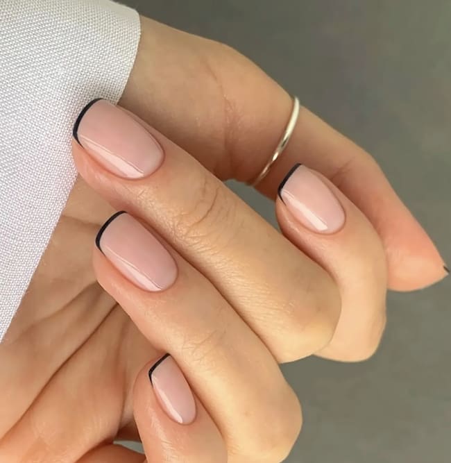 Dos trazos finos en la punta aportan profundidad y modernidad. Ideal para uñas medianas y largas.