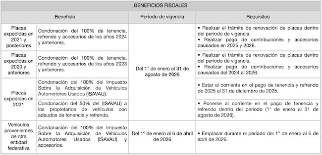 Por otro lado, los vehículos con placas expedidas en 2021 y años posteriores también tienen una oportunidad de ahorro. Ellos podrán recibir la condonación total de la tenencia y refrendo de los años 2024 y anteriores. El requisito es el mismo: realizar la renovación de placas en tiempo y forma, además de cumplir con los pagos de 2025 y 2026.