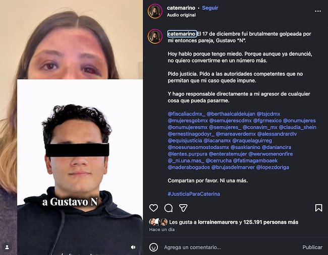De acuerdo con su testimonio, la agresión ocurrió el 17 de diciembre de 2025 y fue denunciada formalmente ante la Fiscalía General de Justicia de la Ciudad de México. Ana Caterina explicó que, tras presentar la denuncia, las autoridades le otorgaron medidas de protección para evitar que el presunto agresor se le acerque.