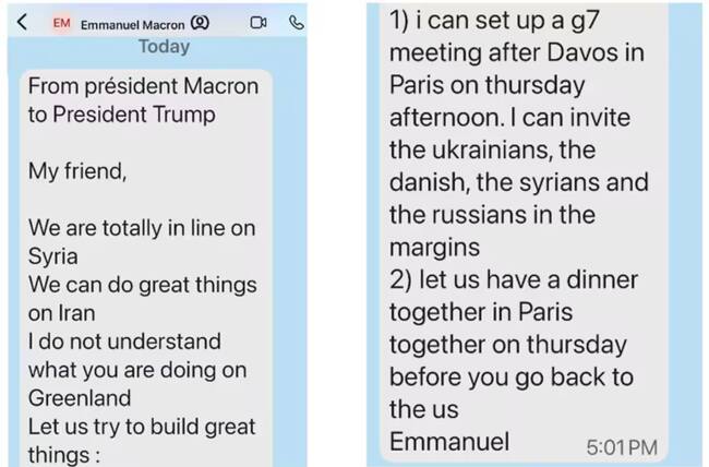 En ese intercambio, Macron plantea la posibilidad de una reunión urgente del G-7 en París tras el Foro Económico Mundial de Davos, con la intención de abordar varios asuntos abiertos de la agenda internacional, entre ellos Ucrania y la situación en el Ártico. Incluso sugiere encuentros paralelos con representantes de países directamente implicados, como Dinamarca, y propone una reunión personal con Trump antes de su regreso a Estados Unidos.