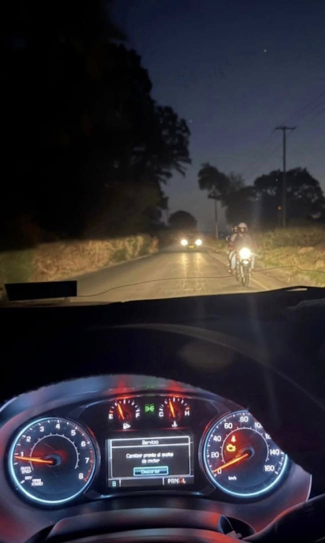 Lidya Valdivia envió esta fotografía del auto y la motocicleta con dos hombres a bordo que la perseguían.
