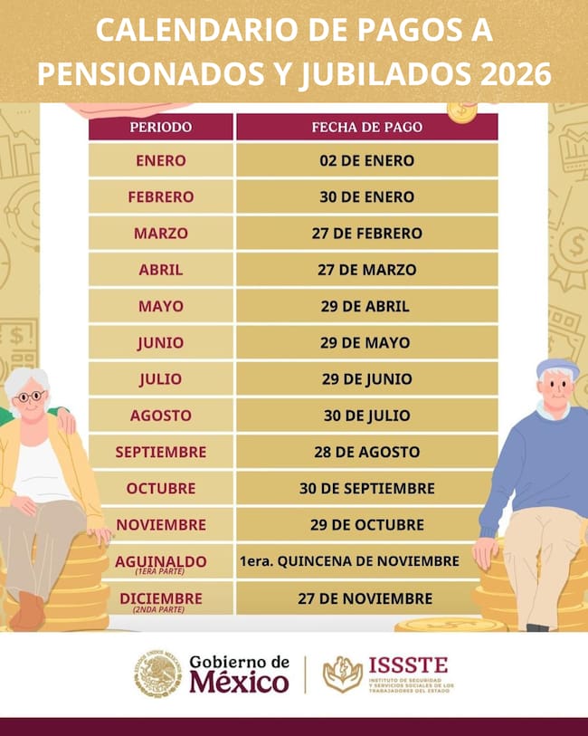 TE PUEDE INTERESAR: Pago de pensiones ISSSTE 2026: calendario confirmado y fecha exacta cuándo depositan el aguinaldo