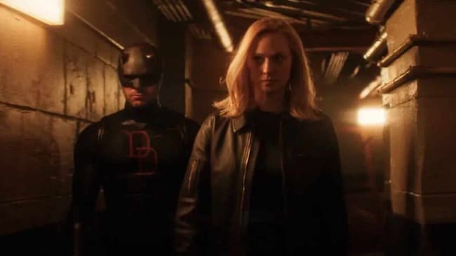 El regreso de Jessica Jones marca su vuelta al UCM tras más de siete años de ausencia. La última vez que Krysten Ritter interpretó al personaje fue en 2019, en la tercera temporada de Jessica Jones. En esta ocasión su rol adquiere mayor peso narrativo, la relación entre ambos héroes, previamente explorada en The Defenders, se profundiza notablemente, pasando de una alianza circunstancial a un vínculo de apoyo constante. El tráiler la muestra asistiendo a Murdock tras un enfrentamiento, siedno ahora como su principal aliada en medio de la persecución estatal tras la captura de Frank Castle alias Punisher al final de la temporada pasada.
