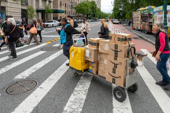 New York, New York, USA May 25, 2025 An Amazon Prime driver / Alexander Farnsworth