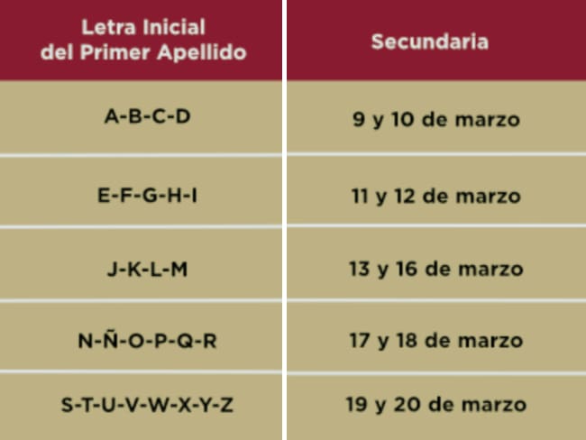 El proceso de preinscripción para secundaria inicia el lunes 9 de marzo de 2026 en el SAID. El calendario se organiza según la letra inicial del primer apellido del aspirante.