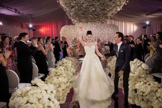 Al matrimonio acudieron numerosas figuras internacionales como Salma Hayek, Victoria Beckham, Lin-Manuel Miranda, Maluma, Vin Diesel y Daddy Yankee, entre otros. Apenas seis meses después, la pareja daba la bienvenida a su primer hijo, Marco Antonio, nacido en junio de 2023.