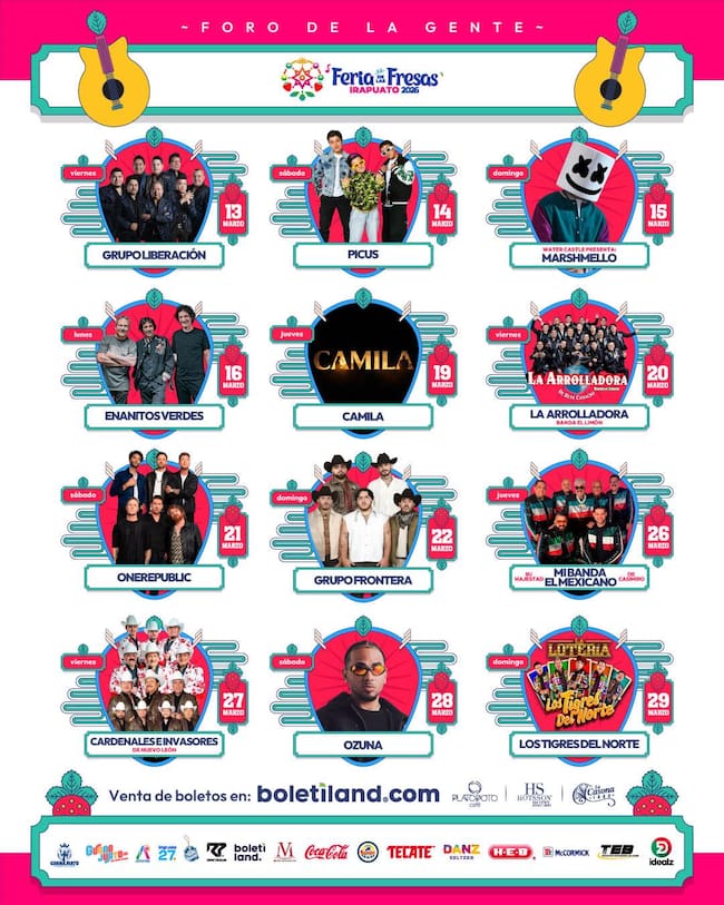 Checa la cartelera de la Feria de las Fresas 2026 en Irapuato y aparta las fechas para ver a La Arrolladora y Ozuna EN VIVO este año
