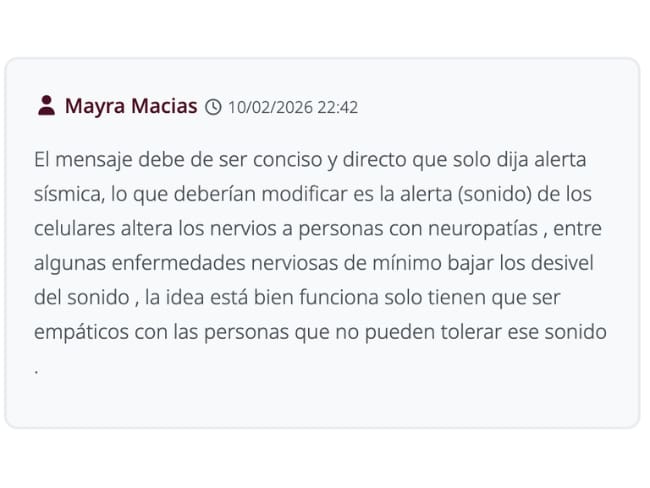 Sin embargo, hay una tendencia que parece dominar la consulta: la vuelta a lo simple. Gran parte de los participantes coinciden en que el mensaje debería limitarse a decir “alerta sísmica”, evitando complicaciones innecesarias. Al respecto, usuarios han señalado que no hay razón para complejizar el sistema de alarma, pues con que el dispositivo alerte es más que suficiente. Pero, también hay voces más ácidas que cuestionan las prioridades de la administración en turno.