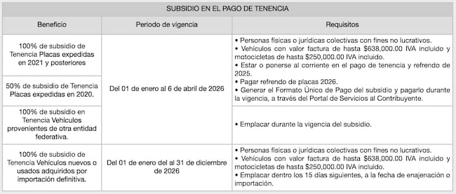 - Estar al corriente: Debes haber pagado tu tenencia y refrendo del 2025 (o ponerte al día antes de solicitar el subsidio).